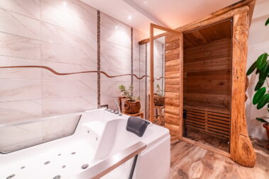 - Prostorija sa hidromasažnom kadom za dvoje i saunom za dvoje