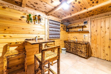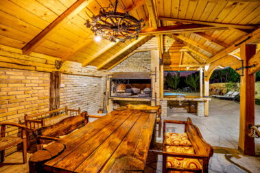 - prostrani letnjikovac sa pečenjarom koji je opremljen sa tanjiračom, roštiljem, malim i velikim sačem, kotlićem, ražnjem i velikim frižiderom.