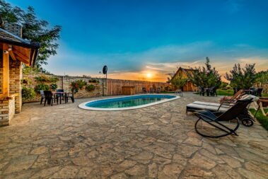 - savremeni bazen dimenzija 8.5mx4m, dubine 1.5m sa pratećim udobnim ležaljkama