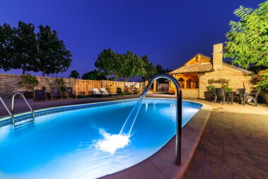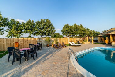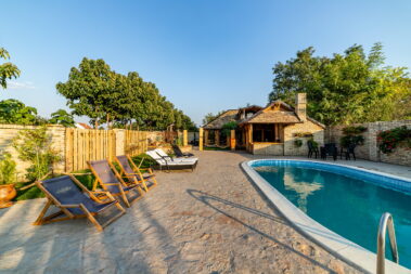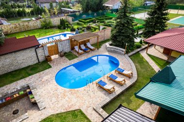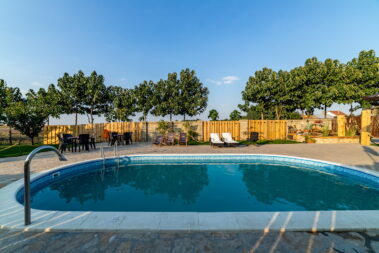 - dva bazena dimenzija 8.5mx4m, dubine 1.5m sa pratećim udobnim ležaljkama