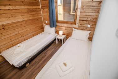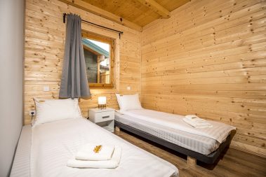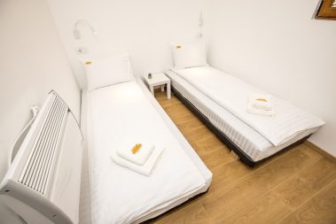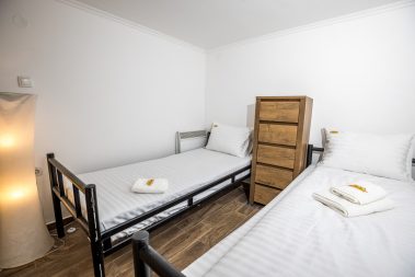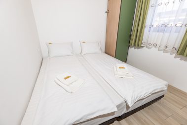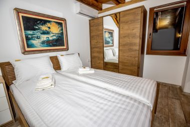 - Dve zasebne spavaće sobe sa bračnim krevetom i pomoćnim ležajem