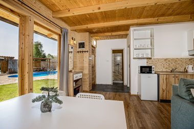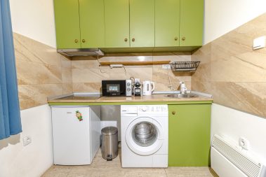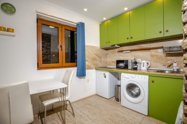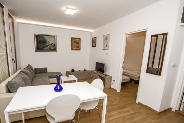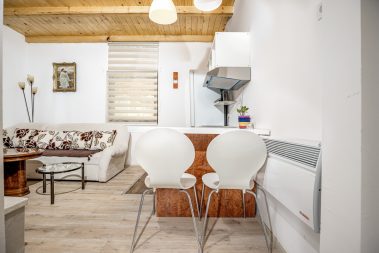 - Dnevni boravak sa ugaonom garniturom na razvlačenje i kompletno opremljenom kuhinjom i frižderom