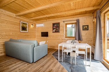 - Dnevni boravak sa ugaonom garniturom na razvlačenje i mini kuhinja sa frižiderom
