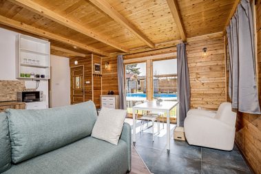 4 lux kucice za 16 osoba za spavanje i boravak. Svaka kucica ima svoju kuhinju,kupatilo,dnevni boravak itd.