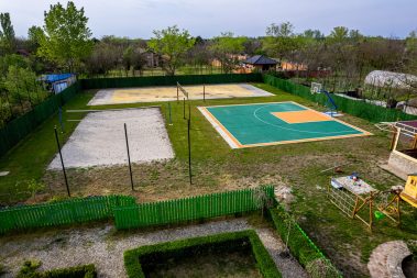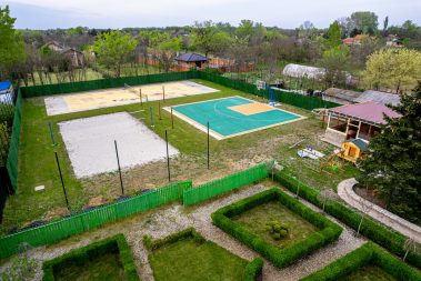 - prostrani park, teren za basket, tenis i veliki peskoviti teren za odbojku na pesku