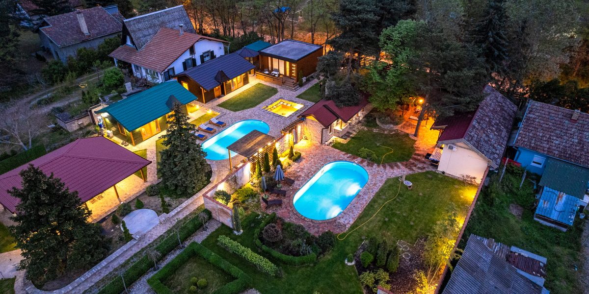 5 lux kucice za 20 osoba za spavanje i boravak. Ovim pakeom smo objedinili kompletan kompleks od 5 kućica i dva bazena, sve što obuhvata VIP Paket 1 i Paket 2 iz naše ponude u Subotici. Svaka kucica ima svoju kuhinju, kupatilo, dnevni boravak sa LCD televizorom i kablovskim kanalima, bežičnim internet u svim prostorijama.